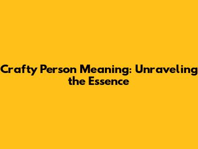 Crafty Person Meaning: Unraveling The Essence
