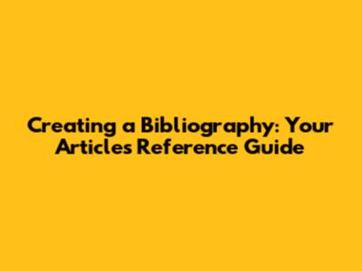 Creating A Bibliography: Your Article's Reference Guide