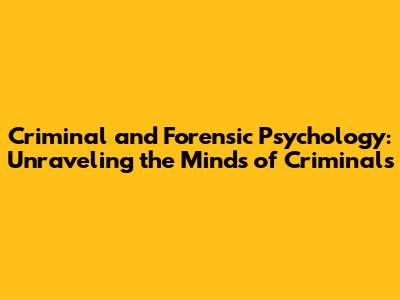 Criminal And Forensic Psychology: Unraveling The Minds Of Criminals