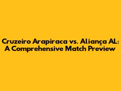 Hey sports fanatics! Get ready for a deep dive into the upcoming match between Cruzeiro Arapiraca and Aliança AL. We're going to break down everything you need to know, from team stats and player performance to potential strategies and predictions. Whether you're a seasoned bettor or just love the thrill of the game, this is your ultimate guide. Buckle up, because we're about to explore every angle of this exciting showdown, and we'll see who comes out on top! Let's get started.