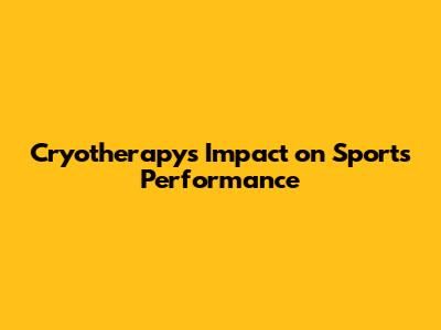Cryotherapy's Impact On Sports Performance