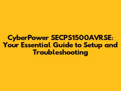 CyberPower SECPS1500AVRSE: Troubleshooting & Setup