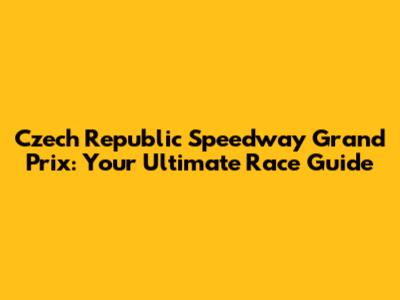 Czech Republic Speedway Grand Prix: Race Guide