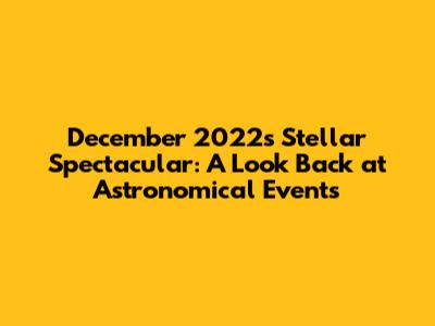 Hey astronomy buffs and casual stargazers! Let's rewind the clock and dive back into December 2022, a month that treated us to a fantastic display of celestial happenings. This wasn't just any old month; it was a cosmic cocktail of meteor showers, planetary alignments, and other breathtaking sights. Whether you're a seasoned astronomer or just someone who enjoys gazing up at the night sky, December 2022 delivered some memorable moments. I'll give you the rundown of the most notable astronomical events in December 2022, so you can catch up on what you might have missed! Grab your telescopes, binoculars, or just your comfy blanket because we're about to explore the cosmos. Let's see all the astronomical events in that month.