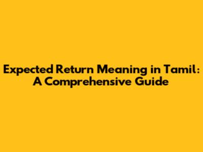 Deciphering Expected Return: A Tamil Guide