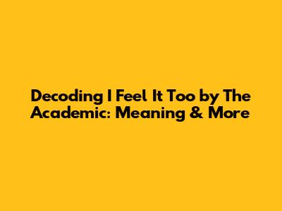 Decoding 'I Feel It Too' By The Academic: Meaning & More
