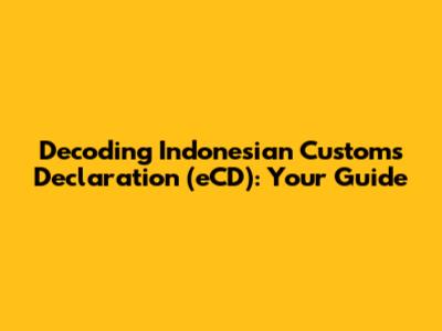 Hey guys! Ever felt like you're wading through a sea of paperwork when dealing with Indonesian customs? If you're importing or exporting goods, you've probably encountered the Indonesian Customs Declaration, often referred to as the eCD. Don't worry, it's not as scary as it sounds! This guide will break down the eCD, explaining what it is, why it's important, and how to navigate it like a pro. We'll cover everything from the basics to some more advanced tips to help you streamline your customs process. Let's get started, shall we?