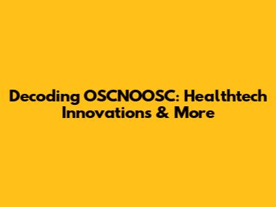 Decoding OSCNOOSC: Healthtech Innovations & More