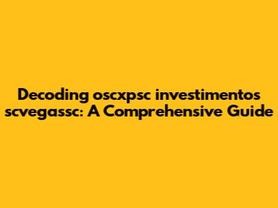 Decoding Oscxpsc Investimentos Scvegassc: A Comprehensive Guide