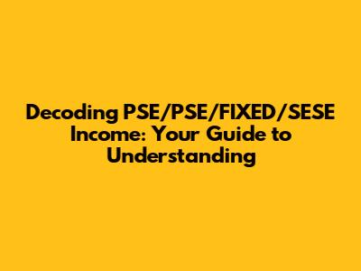 Decoding PSE/PSE/FIXED/SESE Income: Your Guide To Understanding