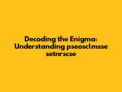 To begin, let's analyze the individual components of "pseosclmsse setnrscse." We have two distinct parts separated by a space: "pseosclmsse" and "setnrscse." This separation could indicate that each part represents a different element or concept. For instance, the first part might be a specific identifier or code, while the second part could represent a category or attribute. Alternatively, it's possible that the entire string is meant to be read as a single, unified term. To investigate further, we can look for any similar strings or patterns online, or consult with experts in relevant fields who might have encountered something similar before. Remember, the key to solving any mystery is persistence and a willingness to explore all possibilities.