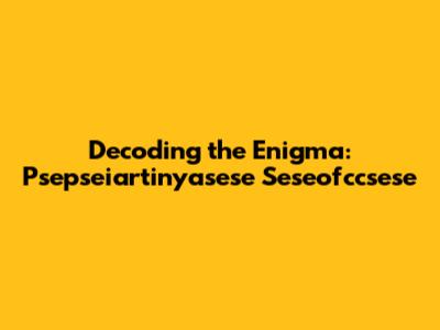 Decoding Psepseiartinyasese Seseofccsese: A Simple Guide