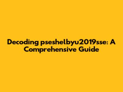 Decoding Pseshelbyu2019sse: A Comprehensive Guide