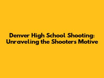 Denver High School Shooting: Unraveling The Shooter's Motive