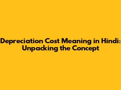 Depreciation Cost Meaning In Hindi: A Complete Guide