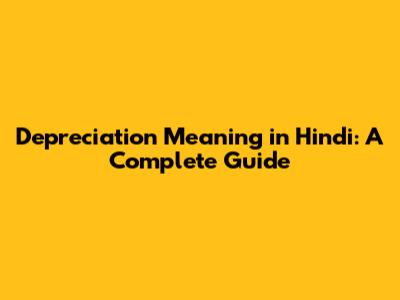 Depreciation Meaning In Hindi: A Complete Guide