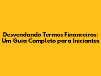 Desvendando Termos Financeiros: Um Guia Completo Para Iniciantes