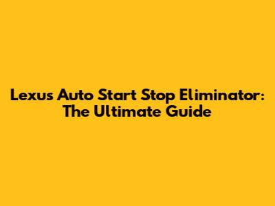 Disable Lexus Auto Start Stop: The Ultimate Guide