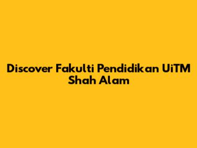 Hey guys! Today, we’re diving deep into the Fakulti Pendidikan at UiTM Shah Alam. If you're thinking about a future in education or are just curious about what this faculty offers, you’ve come to the right place. Let’s explore everything that makes this faculty a standout choice for aspiring educators.