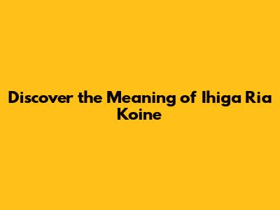 Discover The Meaning Of Ihiga Ria Koine