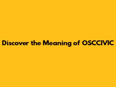 Discover The Meaning Of OSCCIVIC
