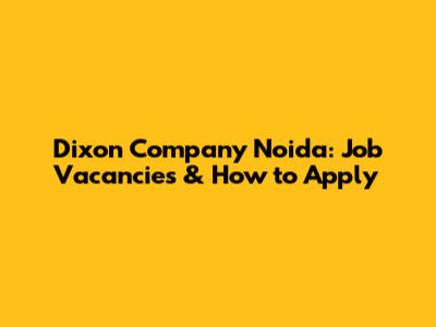 Dixon Company Noida: Job Vacancies & How To Apply