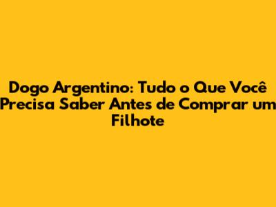 Parabéns, se você chegou até aqui, significa que está realmente comprometido em receber um Dogo Argentino em sua vida! Ao seguir este guia, você estará mais preparado para comprar um Dogo Argentino de forma responsável, proporcionando a ele uma vida feliz e saudável. Lembre-se, ter um Dogo Argentino é uma experiência incrível, cheia de amor, lealdade e companheirismo. Eles se tornam parte da família, e a dedicação que você terá com ele será recompensada com muito carinho e alegria.