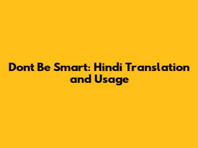 Don't Be Smart: Hindi Translation And Usage
