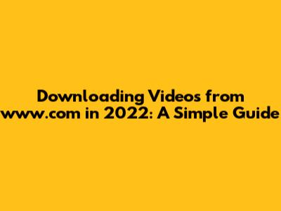 Download Videos From Www.com In 2022: A Simple Guide