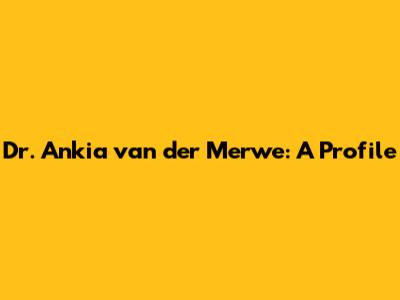 Dr. Ankia Van Der Merwe: A Profile