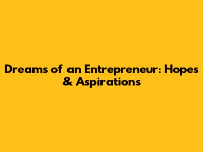 Dreams Of An Entrepreneur: Hopes & Aspirations