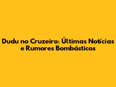 Dudu No Cruzeiro: Últimas Notícias E Rumores Bombásticos
