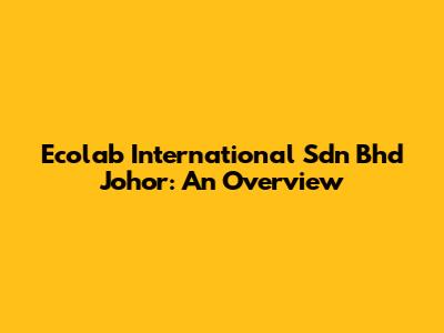 Ecolab International Sdn Bhd Johor: An Overview