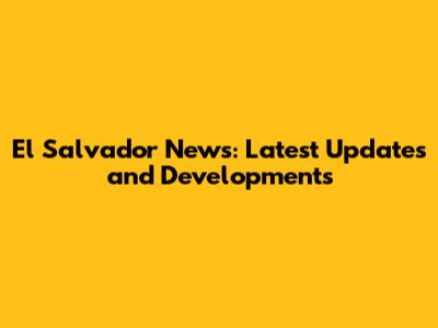 El Salvador News: Latest Updates And Developments
