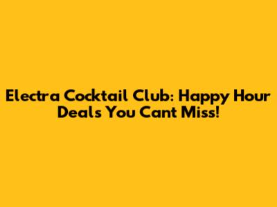 Electra Cocktail Club: Happy Hour Deals You Can't Miss!