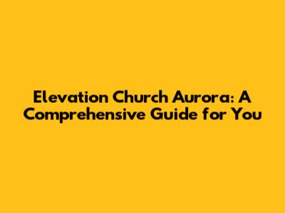 Elevation Church Aurora: Your Guide