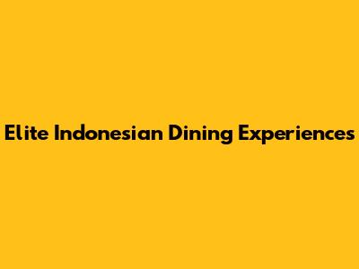 Elite Indonesian Dining Experiences