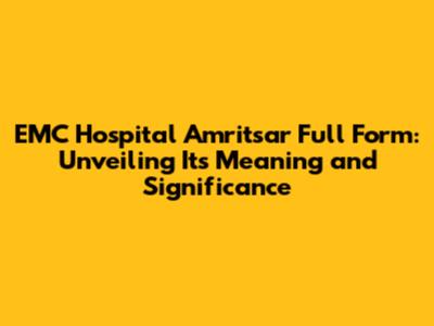 EMC Hospital Amritsar: Meaning And Comprehensive Overview