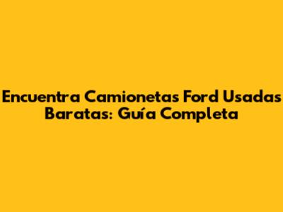 Encuentra Camionetas Ford Usadas Baratas: Guía Completa