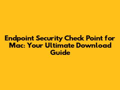 Endpoint Security Check Point For Mac: Download Guide
