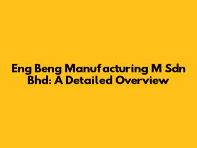 Eng Beng Manufacturing M Sdn Bhd: A Detailed Overview