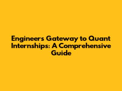 Engineer's Gateway To Quant Internships: A Comprehensive Guide