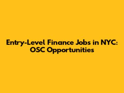 Entry-Level Finance Jobs In NYC: OSC Opportunities