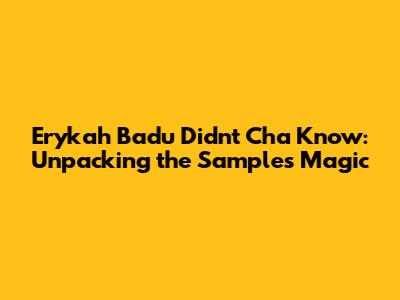 Erykah Badu Didn't Cha Know: Unpacking The Sample's Magic