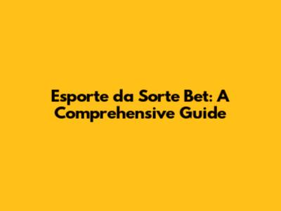 Esporte Da Sorte Bet: A Comprehensive Guide