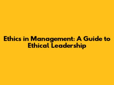 Ethics In Management: A Guide To Ethical Leadership