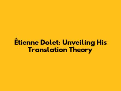 Étienne Dolet: Unveiling His Translation Theory