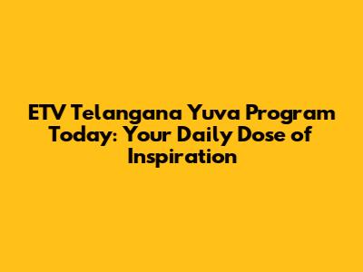 ETV Telangana Yuva Program: Your Daily Dose Of Inspiration