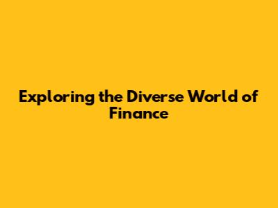 Exploring The Diverse World Of Finance
