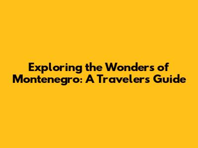 Exploring The Wonders Of Montenegro: A Traveler's Guide
